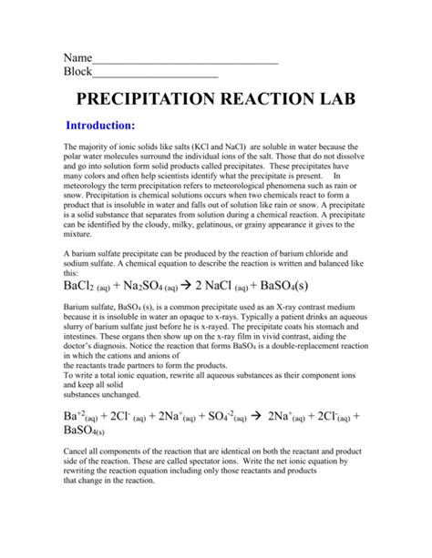 Read Chemistry Lab Report Precipitation Reactions Answers mobipocket